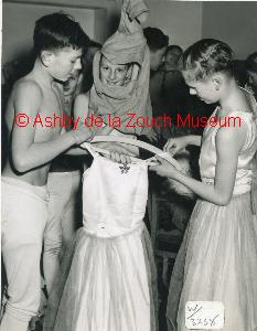 Getting into costume for an unknown play and unknown date but possibly in the 1950's.