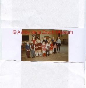 Holy Trinity Church Sunday School anniversary in mid 1960's. preparing to parade into church. First photo: Adult Iris Holt (in orange), Kate Rice holding books, 1st girl Susannce Stapley. Second photo: A class photo in Triniy church hall: L-R: 2 unknowns, 2 Master Vickers, Ruth Smith, Sandra Fowkes, Susanne Stapley. Front row L_R: All unknown. Third photo:standing: unknown, 2 Master Vickers, Ruth Smith. In front in turquoise - Vivianne McConnel.