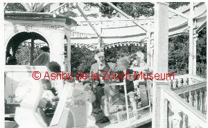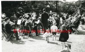 National Coal Board, Coleorton Hall, fete and gala in 1965. Roundabout and brass band. Gentleman on roundabout is Ron Webster, Area Electrical Engineer. Note price of ride 6d!!