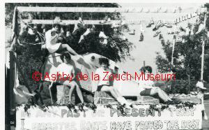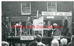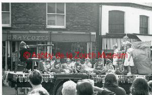 National Coal Board, Coleorton Hall, fete and gala, 10th September 1966. Floats passing through Coalville. Note on the NFU Ashby branch float - live cows!!!