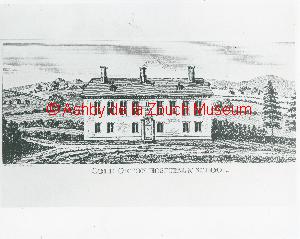 Sketch dated 1794, Coleorton Hospital and school, founded by Viscount Beaumont in 1701, located on the site of present Almshouses which were built in 1867.