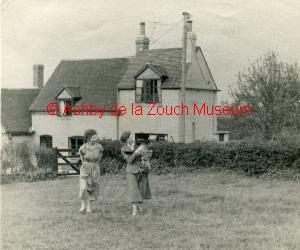 First photo, The Outwoods, Coleorton in 1955. Left: Jean Merriman. Right: Betty Watmough. Second photo: Ivy Cottage, The Moor, Coleorton. Standing in doorway: Elizabeth Charville (died 1954).