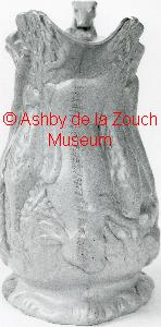 A glazed earthenware jug made in the Coleorton pottery, between 1838 and 1841 by "Wilson and Proudman". Style known as "Dog and Hanging Game" potery. Note handle in the form of a greyhound which was a feature of this style of pottery.
