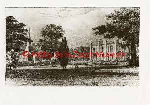 Engraving of unknown date of the hall and St. Mary's church.