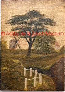 A copy of an oil painting , dated 1907, of Ashby's last windmill off Featherbed Lane, Nottingham Road. Artist appears to have used NR12 as a guide!Was