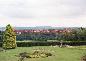 Aerial photo of Coleorton Hall in 1986. Lower photo is the view from the rear of the hall, looking over Coleorton Valley and Bardon Hill in 1997.