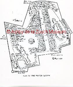 According to plan of the Winter Garden, Coleorton Hall, an ivied cottage and a 2nd cottage are shown on the perimeter. This photo shows the ruins of one or other or both cottages in 1986.