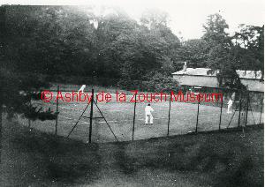 Hardcourt tennis courts in use in about the 1930's. To the right is the old laundry building.