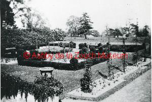 Collage of photos during the time of British Coal occupation 1985 -views of the Rose Garden and grounds from the rear terrace and beyond.