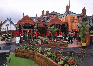 No.1 Shoulder of Mutton (pub) as at opening day 22nd October 2013 as a Wetherspoons outlet. The garden/seating area in what was former car park of pub as viewed from Derby Road.