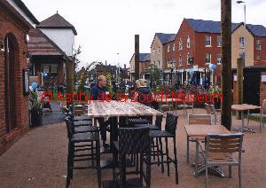 No.1 Shoulder of Mutton (pub) as at opening day 22nd October 2013 as a Wetherspoons outlet. The garden/seating area in what was former car park of pub.