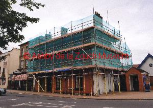 From Derby Road, rear of No.1 Shoulder of Mutton (pub) car park, showing progress of redevelopment into a Wetherspoons outlet in 2013. Disabled persons toilet is the white single storey building with 9 high level windows.