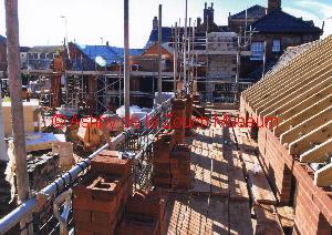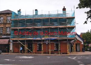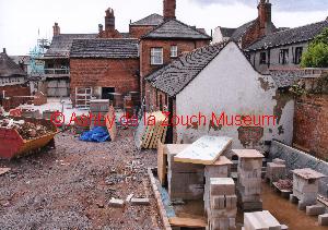 From Derby Road, rear of No.1 Shoulder of Mutton (pub) car park, showing progress of redevelopment at 8th September 2013 into a Wetherspoons outlet in 2013. Disabled persons toilet is the white single storey building with 9 high level windows.
