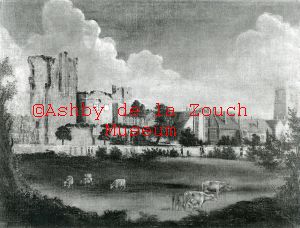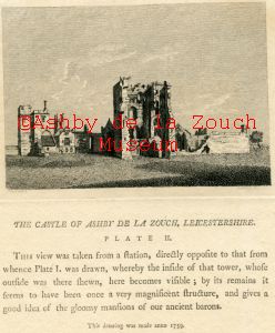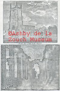 Copy of etching of castle (south view) by Buck 1730, taken from Scott's "Story of Ashby de la Zouch". Second picture is engraving of the castle 1813 (from J.Nichols, History and Antiquities of the County of Leicester)