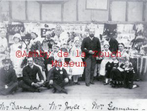 Holy Trinity Church bazaar held in 1886 in the Spa Bath rooms. Three ladies identified: Mrs Davenport, Mrs. Joyce, Mrs. German.