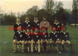 Ashby Mens Hockey team April 1976. Ashby 2nds v Kynoch at the Bath Grounds. Back row L to R: Graham Moore, Martin Roe, Tony York, Paul Truman, Bob Glover. Front row L to R: Mike Wilkinson, Mick Hudson, Alan James, Alan Kirk, Bill Moore, Don Betteridge.