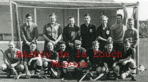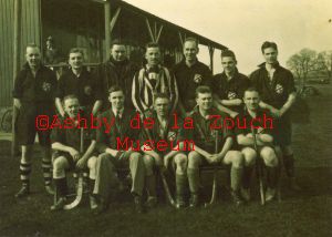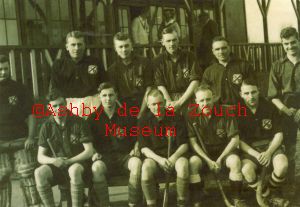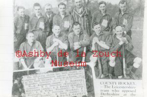 Ashby Mens Hockey teams in probably the laste 1940's. Back row L to R: L.T.Hall, E.Thompson, A.E.Hurd, M.Bramley, S.Thompson, A.P.Crosbie. Seated, front row L to R: G.Dolman, J Topliss (vice captain), K.T.Orton (captain), W.Kilbourne, A.E.F.Searancke.