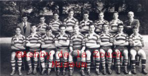 1st XI football team in 1938. Staff members standing at extreme back: L to R: T.A.Woodcock (headmaster), Mr. Hovington (English master) and L.H.Matthews. Back row L To R: Williams, M.Dean, Bevan, M.Blockley, W.Harrison, Holmes. Seated: L to R: J.Cox, R. Evans, G.Lewis, Staley, R.Willock.