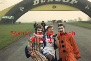 At Donington Park race course, grammar school pupils in fancy dress at some sort of event in around 1983.
