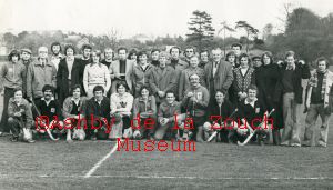 Ashby Mens Hockey team on Bath Grounds. Back row L to R: Martin Insley, Tony Beadsmore, Dick Williams (Derbys umpire), Paul Truman, Kevin Box, Alan Kirk, Roy Bates, unknown, Lou Brewin (Leics umpire), Andy Pick, Steve Cotton, Bob Glover, Johnny Bloor, Bill Moore, Martin Roe, Chris Boyle, Don Betteridge, Mike Wilkinson, Philip Ranson, Tony York, Steve Williams, Gordon Pickering, Maurice Ransom, Richard Wilkinson, unknown. Front row L to R: Steve Lightfoot, Ali Amijee, Peter Criddle, Barry Kendall?, Malcolm Chevin, Jerry Wagg, Mick Cracknell. David Dobson, Bob Moore, Colin Hill.