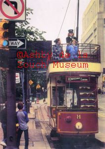 Restored tramcar No.14 from the Burton and Ashby tramway, pictured in Detroit U.S.A. in approximately 1980, running on the Detroit Citizens railway.