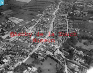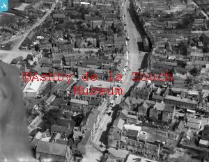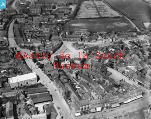 Aerial photo showing Derby Road to left in middle. Large white building is the old cinema. The Green in middle with prison building.