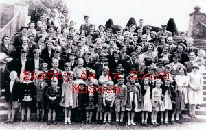 Ashby Methodist Church Sunday School, trip to Trentham Gardens 1954/55. Known names: Walter Ward, Mrs. Phyllis Ward, Mary Ward, David Sewel, Geraldine Brown, Sonia Whetton, John Sewel, Mrs. Cadman, Lily Simmonds, Elsie Layland, Ella Millard, Ken Millard, Ron Baker, Rita Blount, Donald McCutcheon, His father (minister Bronwin Franklin), Edna Conibear, Mrs. Baker, David or John Platt, John Simmonds, Michael Conibear, Roy Grew, Gladys Underwood, another Mr. Ward, Janet Walster, Roy (?) Millard, Keith Wright, his sisters Cynthia and Kathleen, Carl Thornley, David Stafford, Dennis Winfield, Kathleen Poyser, Susan Keeling, Maureen Conibear, Mr & Mrs. Chadbourn, Mavis Winfield, Alan Richardson, Robert Smithard, Donald Ward, Andy Cadman.