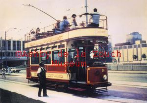 Restored tramcar No.14 from the Burton and Ashby tramway, pictured in Detroit U.S.A. in approximately 1980, running on the Detroit Citizens railway.