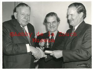 Ashby Town Cricket club, 1971, 25th anniversary presentation (club founded in 1946). L to R: C.B.Parsons (president), J.E.Brown, Reg Brown.