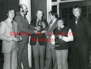 Ashby Town Cricket club, 1980 presentation (probably at Royal Hotel). L to R:Blair Bath, Richard Smithard, Jim Richards, John Mitchell, unknown, David Hartwell.