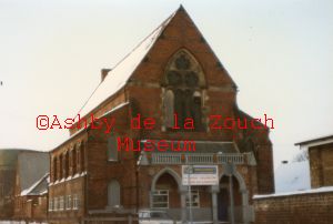 Kilwardby Street. Wesleyan Methodist chapel built in 1869 and being used as a Auction house/Sale room 10 February 1985, prior to being demolished (area is now exit from Co-op car park)