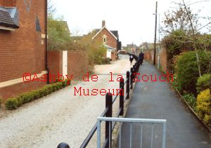 down Churchside Walk which was developed in 2003/4. Line closed in 1950's, and lifted in 1955. Note: extreme left still remaining is the old pedestrian crossing gate.