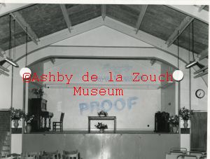 Kilwardby Street. Holy Trinity church hall interior - the stage area. Opened in the 1958