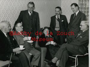 Kilwardby Street. Holy Trinity church hall - the official opening party in 1958. Ted Hunt, George Ridgeway, William Orton, Tom Pearson (just visible behind Canon Handford).