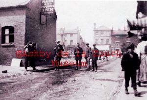tramway in 1905. Hare and Hounds (public house). Lower photo shows workers preparing tramway. Area behind known as Wharf Yard (also area earmarked for new cinema, which never happened due to outbreak of WW11.