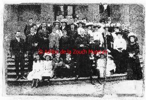 Our Lady of Lourdes Roman Catholic - a church group taken at the entrance to Ivanhoe baths in around 1920. Occasion unknown. Persons identified: back row standing starting 6th from right Mrs Anna Howes, Mrs Hallam, Mrs Hogg, ?, Geoge Buckley, Tom Toon