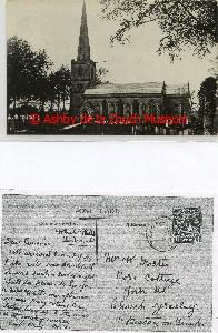 Ticknall church prior to 1820 - postcard sent to a Mrs W Foster of Church Gresley.