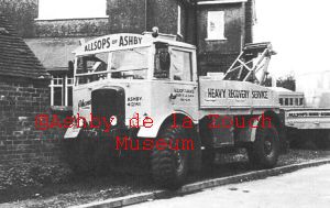 Allsops of Tamworth Road. Recovery truck. Liveried: Allsops of Ashby. Heavy Recovery Service. Phone Ashby 412141 Approx 1980's. Arthur Jones took over the business in mid 1990's.