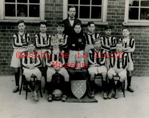 Football team photo, 1923. Arthur Neal with ball between feet.