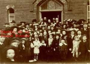 Children in front of unknown building and unknown occasion. Late 1800's