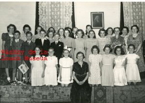 Muriel Smedley at centre front with her piano pupils. She had a pupil's evening annually. These photos were taken June 20-21st 1950 at St. Johns church, Kilwardby Street.