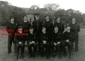 Ashby A.R.P. unit during WW 11, taken in the Bath Grounds, circa 1941. Back row L to R: Unknown, Tom Pearson, Percy Bounter (Police Sgt), John Carr (later vicar of Breedon and master of Ferrers an Ivanhoe Lodge 1954), Jack Goacher, unknown. Front row L to R: All unknown except extreme right is Mr. Hunt.