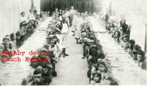 Children at tea during the 1926 strike. Location not known.