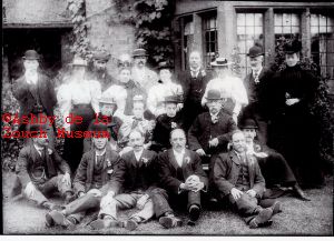 Group of ladies and gents at around beginning of 1900's. Location and reason for photo unknown. Back row L to R: Mr. J. Morley, Mrs. Morley, Mr. H. Tyler, Mrs. S. Sturgess, T. Williscroft, Mrs. T. Williscroft, R. Towle, Mrs. T. Pratt, Mr and Mrs Reggins. Centre: L to R:Mrs. Page, Mrs. J. Leawood, Mrs. Towle, Mr. D. Trevor. Front L to R: Mr. T. Farmer, Mr. J. Leawood, Mr. A.C.Page, Mr. S. Sturgess, Mr. T. Pratt, Mr. T. Heafield.