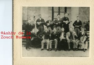 Bath Spa Buildings Orchestra in 1901. Standing L to R: Joe curtis, Dick Grundy, Dan Kirk, unknown, Jack Tyler, Arthur Smith. Sitting L to R: Alfred Wooton, Harry Trevor, Jack Wooton, Jimmy Owen and Ted Owen.