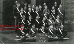 1st Ashby Boys Brigade, 28th. March 1943. Some members identified (see plan in photo file): Ray Smith, Chadbourne, Master Britt, Walter Shaw, John Hill, Master Brown, John Camp, Reg Britt, Master Lawson, Don Toon, Roy Cox, Alan Brookes, Front row L to R: Alec Homer, Ron Collins, Harry Ikin, Eric Muddison, Walter Grew.