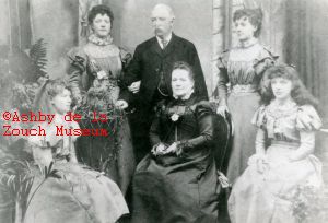 David Trevor, and also with his family. Came to Ashby in the late 1870's and built a reputation for indoor and outdoor photography. Also with his family, standing L to R: Constance, David, Edith. Sitting L to R: Ida, Mrs. Edith Trevor, Elsie. Photo probably taken by Harry Trevor around 1900.