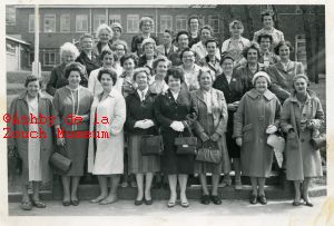 Group photo of Ashby Townswomens Guild in the 1950's. Persons identified: Mrs. Pringle, Ena Lee, Rose Hurd, Rosemary Burnett, Mrs. Watson, Janet King, Mrs. Richards, Nora Rowley, Hilda Brown, Juliet Sanky, Mrs. Illsley.