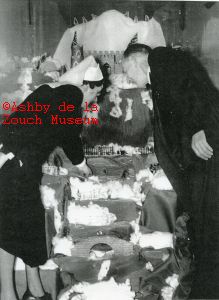Matron Spencer with ?? at Ashby Hospital preparing a Christmas display. Date unknown. Possibly 1950's.