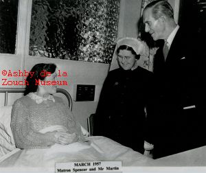 Ashby hospital - March 1957. Opening of maternity extension. "VIP" visitors: L to R: hospital patient with Matron Spencer and Mr. Martin, Chairman Sheffield Hospital board.